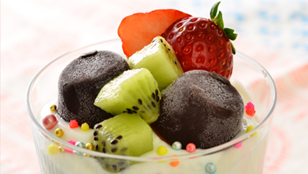 お菓子やフルーツなどお好みの具材をピノと一緒にグラスにつめるだけの簡単パフェです。