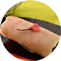 ピノをあんこに見立てて包んだ、桜もち風のスイーツ