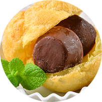 プチシュークリームに切り込みを入れ、ピノをはさみます。
