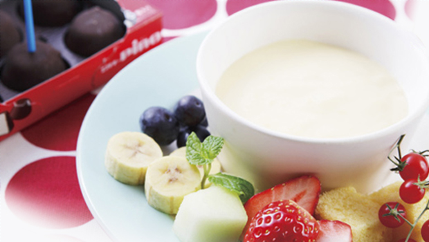 カスタードクリームにラム酒を加えてちょっぴり大人な風味!ピノとフルーツにたっぷりクリームをつけて召し上がれ!みんなで囲んでピノパーティーはいかがでしょう♪(レシピ:フードコーディネーター/管理栄養士 小山浩子)